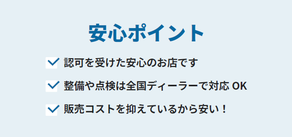- 販売を開始する前に必ずディーラーにて法定点検(12か月点検)を受けます。