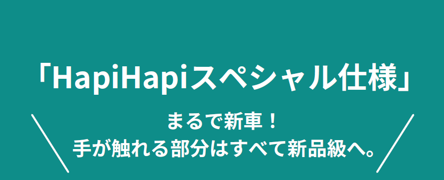 「現状渡し」であるがゆえ、少しでも気持ちよく安心して乗っていただけるように全車「HapiHapiスペシャル仕様」で販売させていただきます!