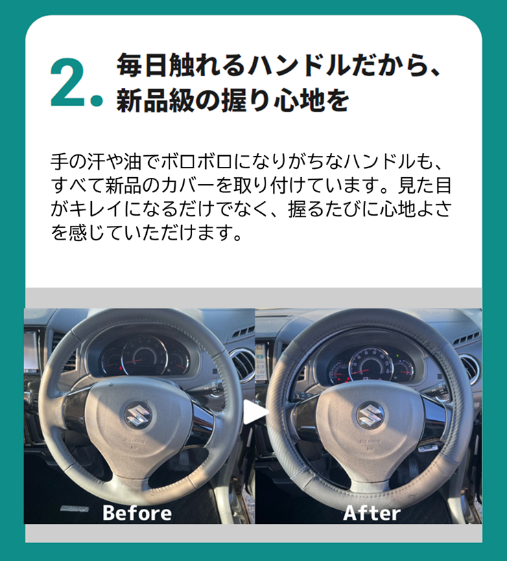 ※前オーナーが受けた直後の場合は、ディーラーにて安全点検を実施します。 - 点検時点での不具合箇所、及び交換が必要箇所については交換整備してから販売します。